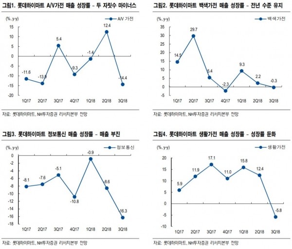 또한 "(롯데하이마트측에서는) 내년 소비경기를 보수적으로 추정하는데, 소비하락 국면에서는 가전제품과 같은 내구재 매출이 가장 많은 영향을 받는 경향이 있어 내년 업황도 보수적으로 전망된다"면서 "수익성 개선도 둔화될 수 있는데, 이번 3분기 인건비 상승으로 고정비율이 높아질 것으로 추정하기 때문"이라고 전망했다.