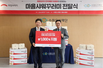 희망브리지, 국민 안전의 날 맞아 수원 재난취약계층에 구호물품 1000세트 전달