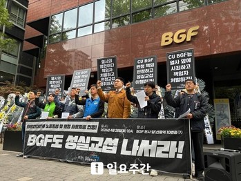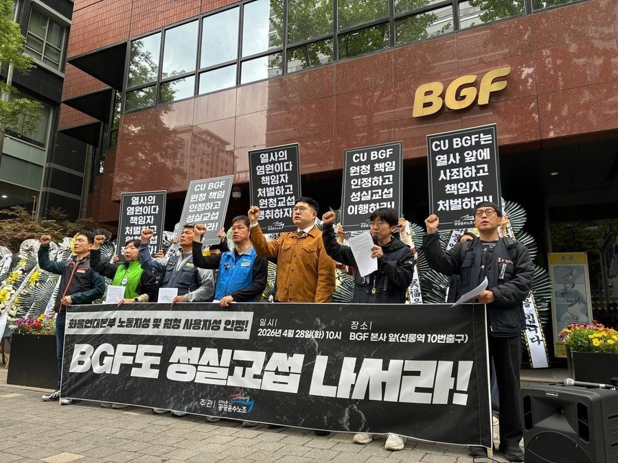화물연대 "법원 판례 통해 확인된 화물노동자 종속성… 업무 수행 전 과정 원청이 통제" BGF, 점주 피해 가중시키는 불법 파업 규정… "실무협의와 사용자성 인정은 별개 사안" 화물연대-BGF로지스 3차 교섭 '평행선'… 노동계, 5월 1일 노동절 앞두고 총력 투쟁 예고 BGF로지스 "우리는 교섭 주체 아냐" 선긋기… 노조 "실질 지배력 행사하며 책임 회피"