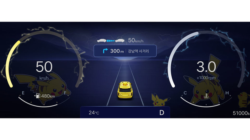 고객들은 포켓몬 디자인이 적용된 ccNC 인포테인먼트 클러스터 디스플레이의 색상과 그래픽, 내비게이션 운행 정보, 시동을 걸고 끌 때 나오는 애니메이션 등을 통해 이동의 여정을 몰입감 있는 감성과 스토리로 채울 수 있다.
