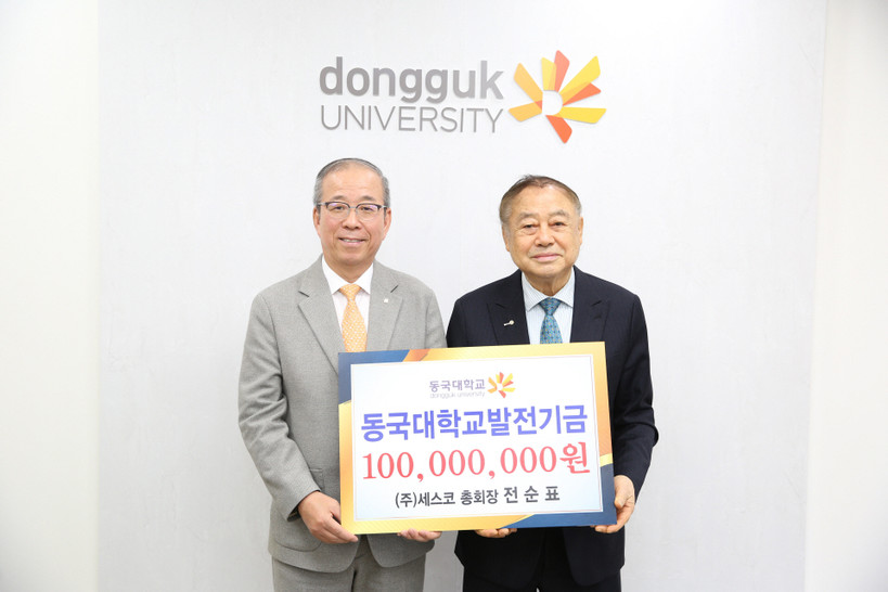 [일요주간 = 엄지영 기자] 세스코 전순표 총회장이 11월 5일 동국대학교 총장 접견실에서 로터스관 건립을 위해 사용해 달라며 발전기금 1억 원을 기부했다. 동국대 농학과와 대학원 작물학 전공을 졸업한 전 총회장은 이번 기부로 모교 누적 기부액 14억 원을 기록하며 지속적인 사회공헌과 교육발전에 대한 의지를 다시 한 번 보여줬다.