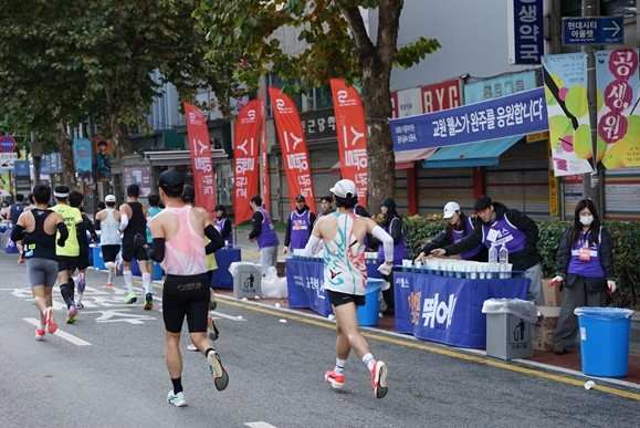 코스 곳곳에는 미네랄 충전 콘셉트로 구성된 4개의 급수대가 약 5km 간격으로 설치돼 전 구간에서 안정적인 급수 환경을 지원했다. 대회 당일 제공된 정수량은 총 2만6천 리터에 달했으며, 러너들은 깨끗하고 균형 잡힌 미네랄 물을 마시며 완주에 필요한 체력을 보충할 수 있었다.