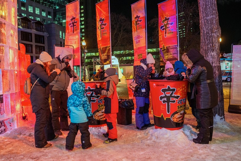 캐나다 퀘벡 윈터 카니발에서는 메인 광장에 ‘신라면 브랜드존’을 조성했다. 특히 입구에 설치된 약 6미터 높이의 신라면컵 모양 얼음 조형물이 대표 포토존으로 자리잡았다. 시식 행사와 SNS 인증 이벤트를 통해 굿즈를 제공하며 10만 명 이상이 브랜드존을 찾은 것으로 집계됐다.
