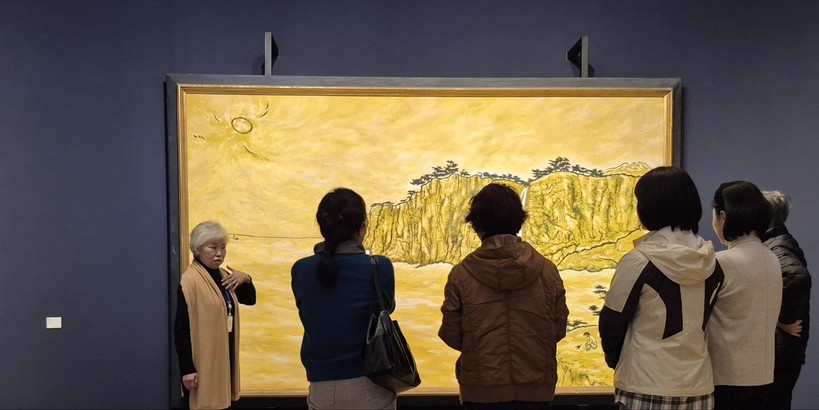 | ▲ <기당미술관> 변시지 작품 해설을 하고 있는 장면 |