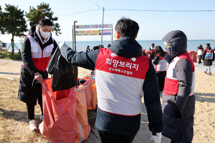 [일요주간 = 김성환 기자] 희망브리지 전국재해구호협회(회장 임채청)가 임직원 40여 명과 함께 인천 왕산해수욕장에서 플라스틱 제로 비치 클린 캠페인을 진행하며 ESG 실천 문화를 확산했다.