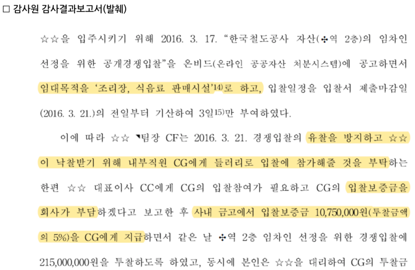 2021년 감사원, 성심당 직원 동원해 입찰 시키는 등 담합행위