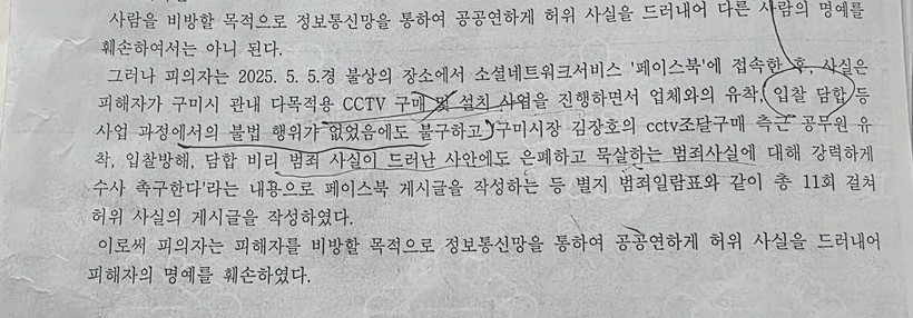 [일요주간 = 최부건 기자] 구미시 노후 차량번호인식장치 교체사업(CCTV 구매사업)을 둘러싼 입찰 비리 의혹이 김장호 구미시장과 이를 폭로한 언론인 간의 '명예훼손 대 무고' 대결로 번지며 파국으로 치닫고 있다. 시장이 비리 은폐를 시도했다는 정황이 쏟아지면서, 김 시장은 재선 불투명 위기에 직면했다.