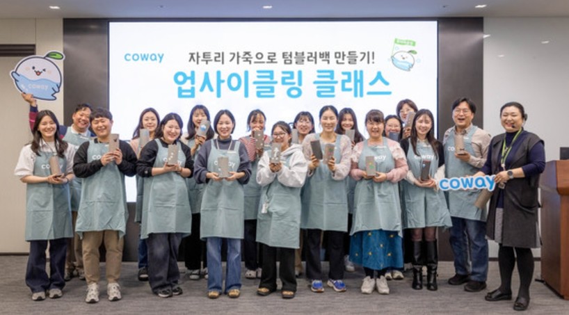 | ▲ 업사이클링 클래스에 참여한 코웨이 임직원들(사진=코웨이) |