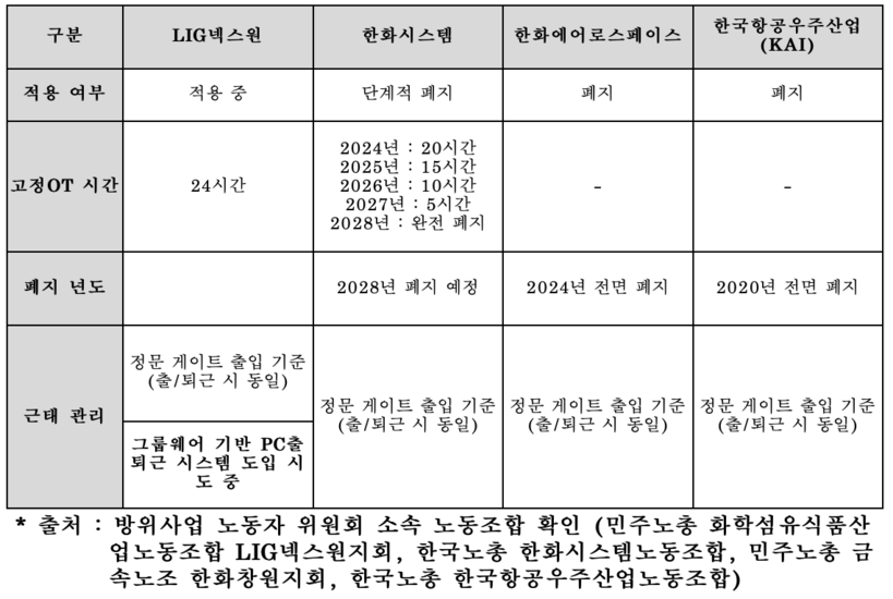 ◇ KAI·한화는 폐지…LIG넥스원만 ‘24시간 공짜야근’ 고수