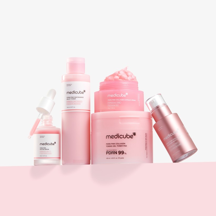 메디큐브 PDRN 라인은 제품군 확장을 통해 스킨케어 전 단계에 걸친 라인업을 구축하고 있다. 현재 ▲PDRN 핑크 펩타이드 앰플 ▲PDRN 핑크 콜라겐 겔 마스크 ▲PDRN 핑크 톤업 선크림을 중심으로 토너, 세럼, 클렌저, 헤어케어 등으로 제품군을 확대하며 소비자 접점을 넓히고 있다.