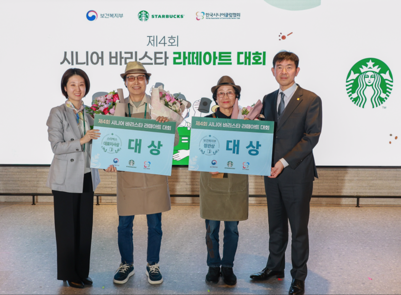 시니어 바리스타 2명에게 각각 보건복지부 장관상과 스타벅스 대표이사상 대상 수여
