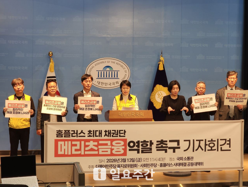 더불어민주당 을지로위원회, 사회민주당 한창민 국회의원, 홈플러스 사태 해결 공동대책위원회(이하 공대위)는 지난 13일 오전 국회 소통관에서 기자회견을 열고 메리츠금융이 긴급 운영자금 조달과 합리적인 채권 조정에 즉각 참여할 것을 요구했다.