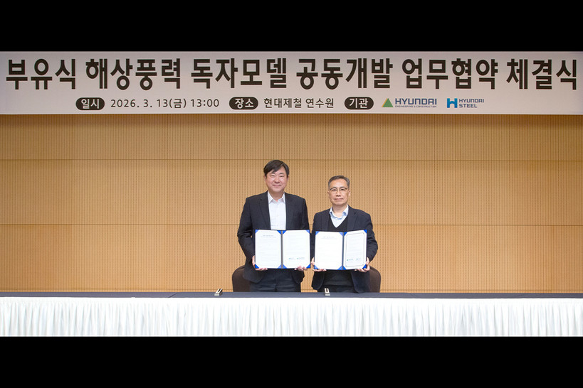현대제철은 지난 13일 당진 현대제철 연수원에서 현대건설과 ‘부유식 해상풍력 독자모델 공동개발 업무협약’을 체결했다고 밝혔다.