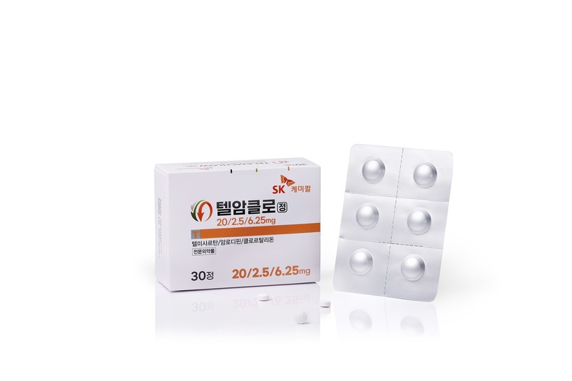 16일 SK케미칼에 따르면 텔암클로는 텔미사르탄 20mg, 암로디핀 2.5mg, 클로르탈리돈 6.25mg을 결합한 저용량 복합제로 각 성분을 단일제 표준용량 대비 절반 수준으로 구성했다. 동일 성분·용량의 트루셋정을 발매한 바 있는 유한양행과 협력을 통해 개발된 제품이다.