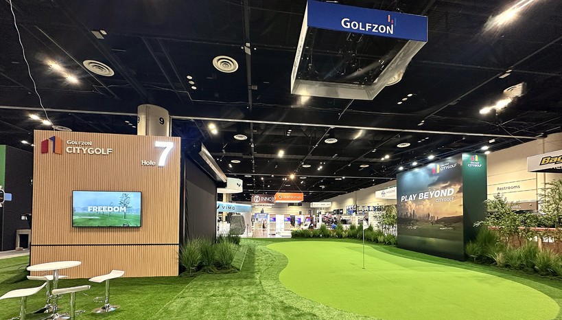 | ▲ 2026 PGA쇼 현장에 설치된 도심형 골프장 '골프존 시티골프' 그린 구역 모습. (사진=골프존 제공) |