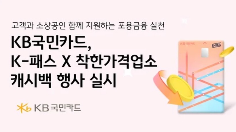 KB국민카드는 ‘K-패스 카드’ 이용자를 대상으로 착한가격업소 이용 시 캐시백 혜택을 제공하는 이벤트를 이달 말까지 진행한다. 이번 행사는 고물가 상황에서 소비자의 실질적인 지출 부담을 줄이는 동시에 소상공인 매출 확대를 유도하기 위해 기획됐다.