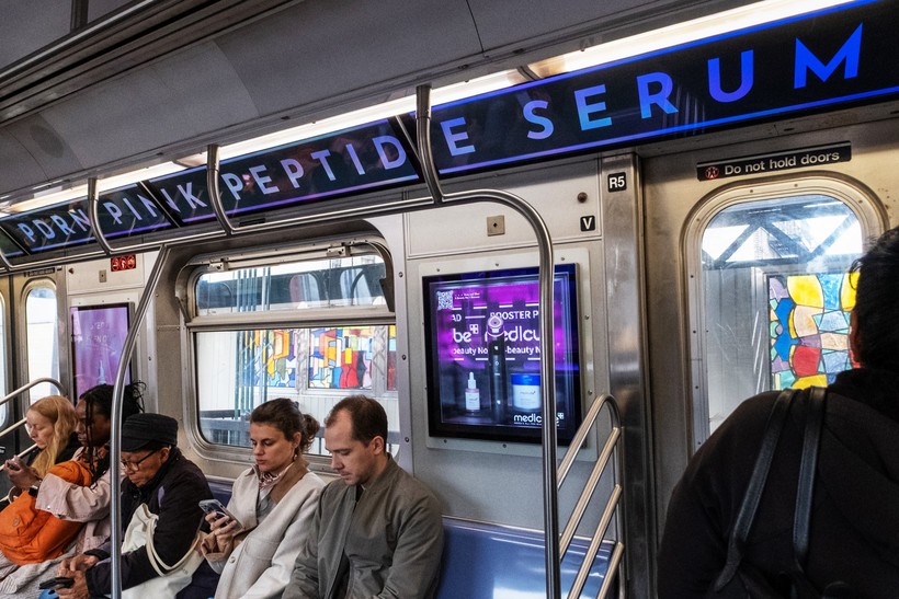 | ▲ 메디큐브 미국 뉴욕 지하철 내 광고(사진=에이피알) |