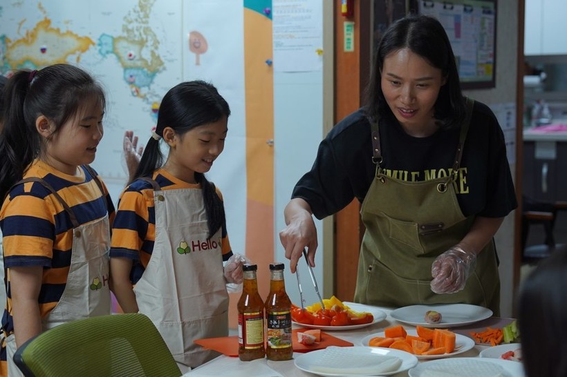 | ▲ 2025년 8월 남양주 무지개지역아동센터에서 아동들이 ‘CJ도너스캠프 꿈키움 문화다양성 교실’ 프로그램의 일환으로 전통음식 쿠킹 클래스에 참여해 다양한 식문화를 체험하고 있다.(사진=CJ그룹) |