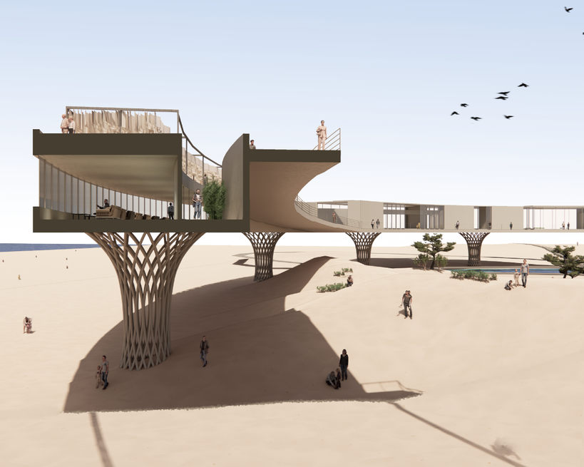 학생들은 태안군 신두리 해안사구의 지형적 맥락을 면밀히 분석해, 자연과 사람, 건축이 서로 간섭하지 않으면서도 공존할 수 있는 설계 방안을 모색했다. 설계 과정에서는 대지 점유를 최소화하고 건축물을 지면에서 들어 올려 토양과 생태가 스스로 숨 쉬며 회복될 수 있는 공간을 확보했다. 이를 통해 건축이 단순히 땅을 차지하는 구조물이 아니라 생태의 흐름을 존중하며 공존을 매개하는 존재로 기능하도록 했다.