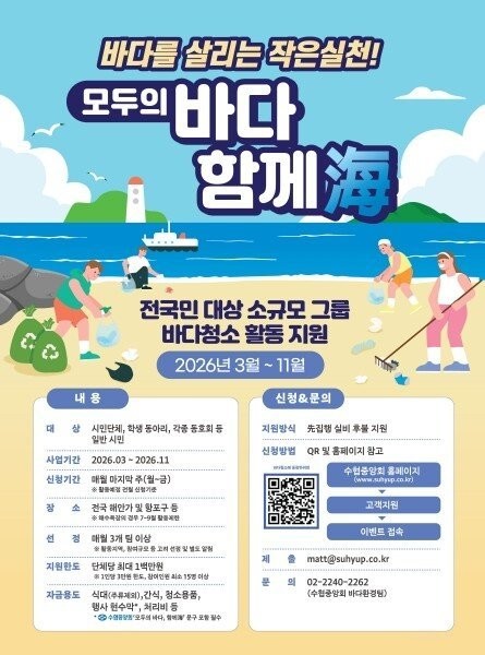 참가 신청은 수협중앙회 홈페이지 또는 안내 포스터의 QR코드를 통해 가능하다. 다음 달 활동을 원하는 단체는 이달 28일까지 신청서를 제출해야 한다.