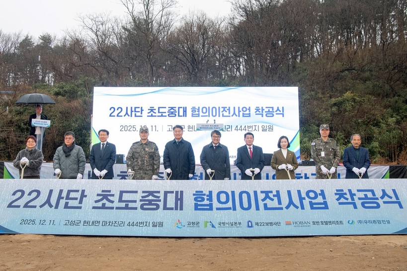 호반그룹은 지난 11일 강원도 고성군 및 제22보병사단과 함께 ‘초도중대 협의이전 사업 착공식’을 개최했다고 밝혔다. 이번 군부대 이전은 고성군 현내면 초도리 일대를 국제적 휴양관광지로 변모시키기 위한 핵심 선행 과제로 이번 착공에 따라 화진포 복합리조트 조성 사업은 한층 탄력을 받게 됐다.