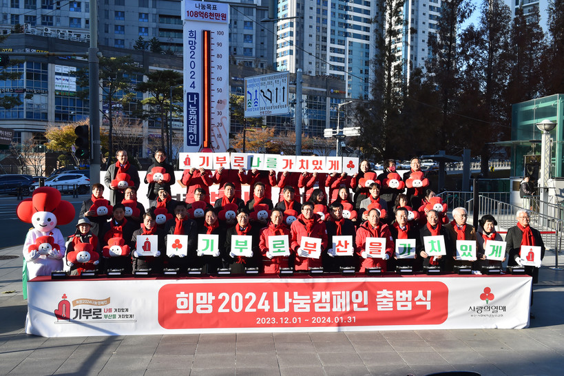 '희망2024나눔캠페인'은 12월 1일부터 내년 1월 31일까지 두 달간 “기부로 나를 가치있게, 기부로 부산을 가치있게”라는 슬로건과 함께 108억6천만 원 모금을 목표로 진행되는 이웃돕기 캠페인이다.